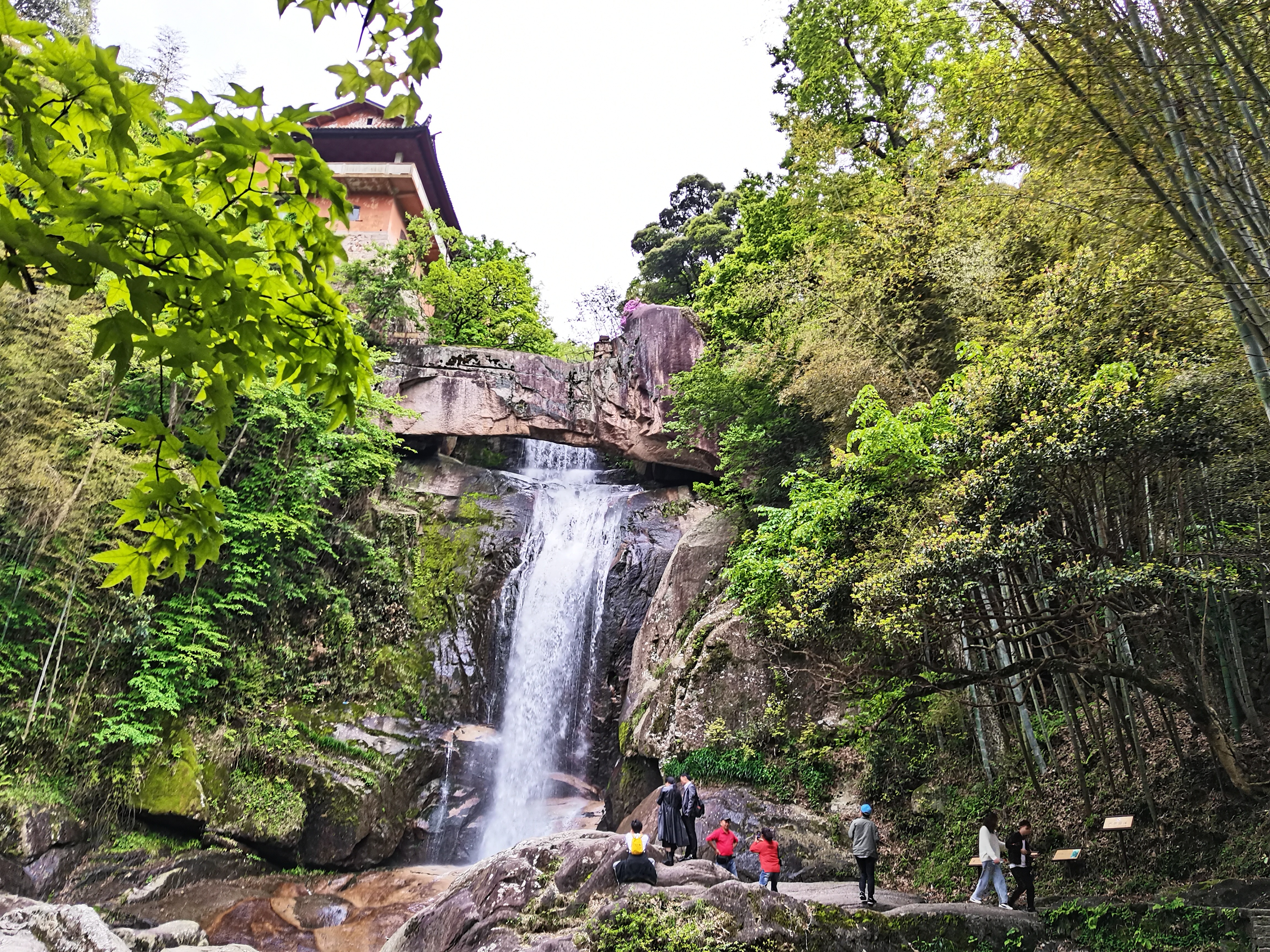 石梁景區(qū)內(nèi),清澈見(jiàn)底的湖水、漫山遍野的樹(shù)木,大家伴著聲聲?shū)B(niǎo)鳴,欣賞了令無(wú)數(shù)文人墨客嘆為觀止的優(yōu)美景色。其中最讓人拍手叫絕的,要數(shù)著名的“石梁飛瀑”了,越是靠近瀑布,激起的水花在微風(fēng)的吹拂下帶來(lái)陣陣涼意,抬頭觀瀑,真有“飛流直下三千尺,疑是銀河落九天”的壯闊之感。 一天的時(shí)間在歡聲笑語(yǔ)中飛快地流逝,員工們?cè)谂c大自然的親近中,擁抱了春天,放松了心情,鍛煉了身體,同時(shí),旅途中大家互幫互助、談笑嬉戲,大大增進(jìn)了彼此的情感和默契。 【國(guó)清寺概況】國(guó)清寺位于浙江省臺(tái)州市天臺(tái)縣城關(guān)鎮(zhèn),始建于隋開(kāi)皇十八年(598年),初名天臺(tái)寺,后取“寺若成,國(guó)即清”,改名為國(guó)清寺。寺廟占地面積7.3萬(wàn)平方米。國(guó)清寺現(xiàn)存建筑為清雍正十二年(1734年)奉敕重修。2006年,國(guó)清寺被國(guó)務(wù)院批準(zhǔn)為第五批全國(guó)重點(diǎn)文物保護(hù)單位。 【石梁景區(qū)概況】石梁景區(qū)位于浙江省臺(tái)州市天臺(tái)縣石梁鎮(zhèn)內(nèi),是天臺(tái)山風(fēng)景名勝區(qū)的精華所在。這里有世界上罕見(jiàn)的瀑布和天生橋巧妙結(jié)合的石梁飛瀑,有舉世聞名的佛教五百羅漢道場(chǎng)“方廣寺”,有法華晨光、龍游澗等多個(gè)主要景點(diǎn)……千古石梁,天下奇觀,瀑以梁奇,梁以瀑險(xiǎn),山、石、水奇妙結(jié)合,歷來(lái)被譽(yù)為天臺(tái)山風(fēng)景之“眉目”。 項(xiàng)淑珍