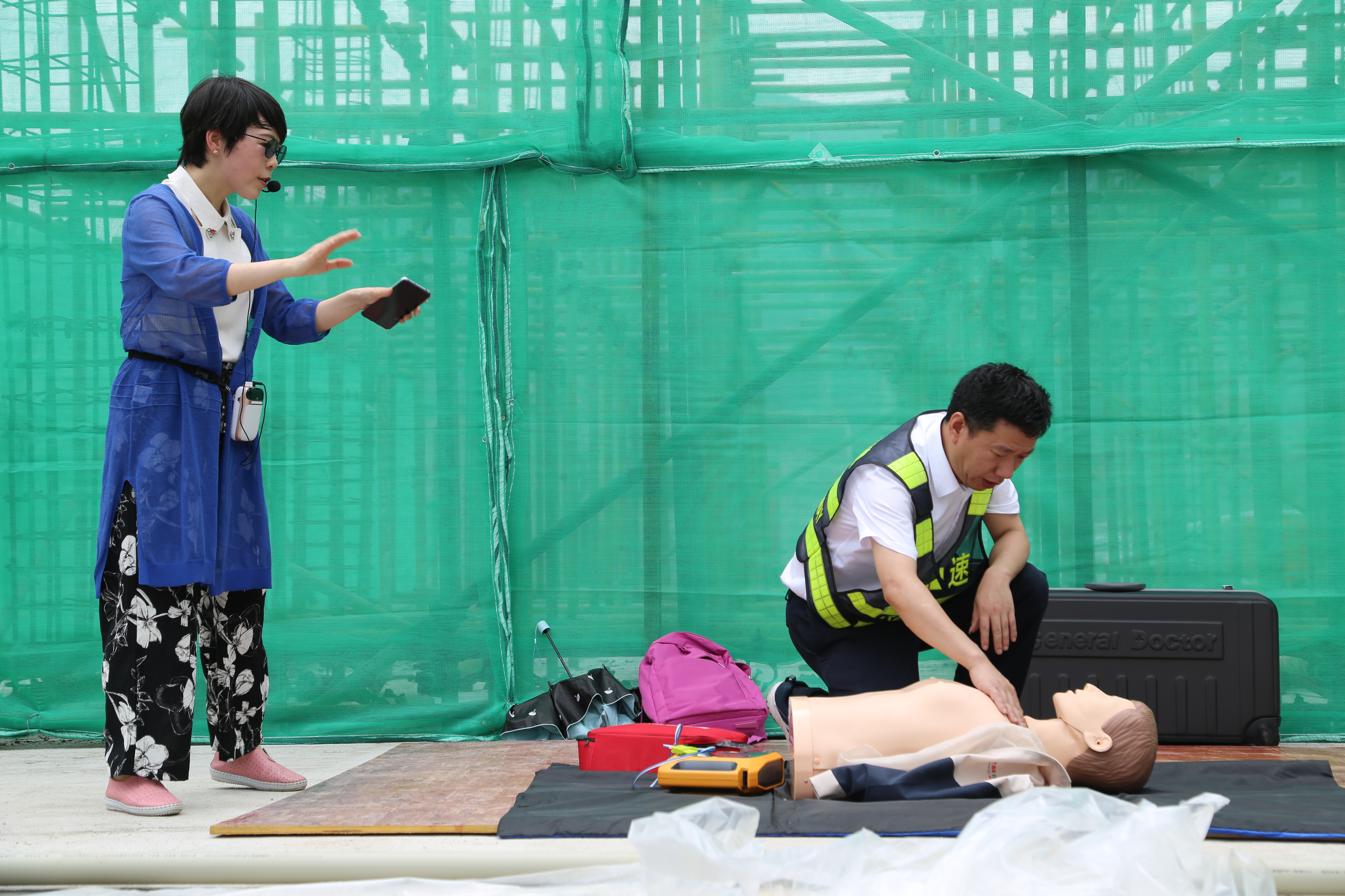 圖為活動人員參加心肺復蘇實操演練 此次演練的第二項重頭戲是心肺復蘇術培訓,建筑工地多為臨時工棚且露天作業(yè),受臺風影響較大,心肺復蘇對于遭遇意外的施工人員來說如同救命稻草。高速集團安保部邀請了臺州職業(yè)技術學院副教授李美芬到演練現場進行心肺復蘇術培訓,李美芬詳細講解了心肺復蘇術和AED的理論知識、操作要領和具體方法,并規(guī)范熟練地進行了現場演示。隨后參與演練的各部門代表上臺學習實操,李美芬細心指導每一個動作,耐心講解每一個要點,教學效果顯著,有效提高了參演人員的急救技能。 防汛防臺無小事,安全生產有保障,房產集團下有多個在建工程項目,此次演練能夠進一步強化現場人員的防汛防臺意識,普及自救急救知識,提高工程管理人員、施工就業(yè)人員的防災抗災和應急處置能力。 盧丹麗