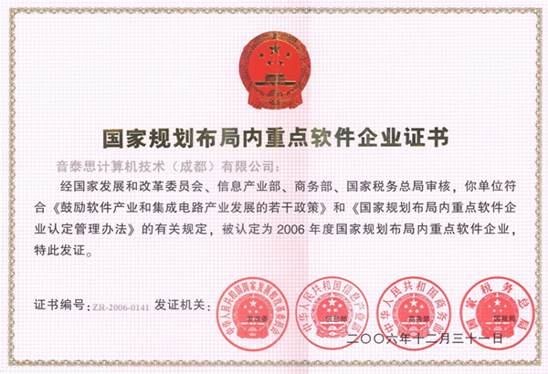 06重點(diǎn)軟件企業(yè)證書(shū)